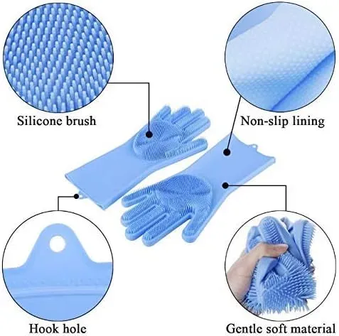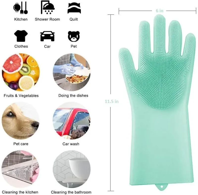 قفازات تنظيف سيليكون سحرية متعددة الوظائف عالية الجودة للمطبخ والحمام وغسل الصحون والعناية بالحيوانات الاليفة وغسيل السيارات